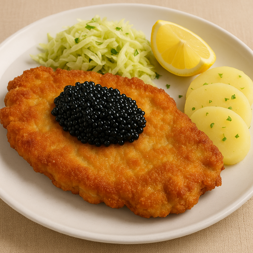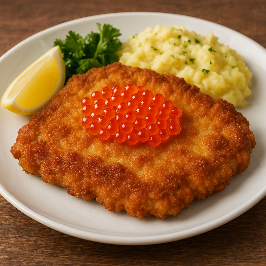 w towarzystwie świeżą sałatką z pomidorów i ogórków
